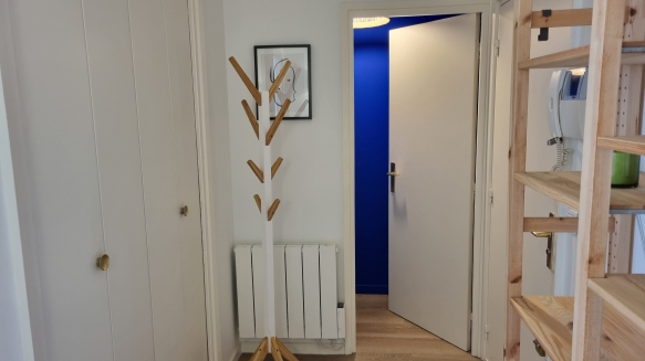 Vous y trouverez également un aspirateur, un étendoir, un fer et une table à repasser